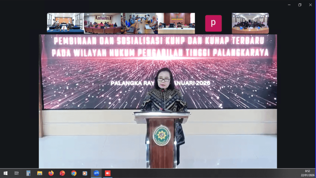 SAMPIT  – Dalam rangka menyongsong implementasi regulasi hukum pidana nasional yang terbaru, Pengadilan Negeri Sampit mengikuti kegiatan Pembinaan dan Sosialisasi Kitab Undang-Undang Hukum Pidana (KUHP) dan Kitab Undang-Undang Hukum Acara Pidana (KUHAP) Baru pada Kamis (08/01/2026).