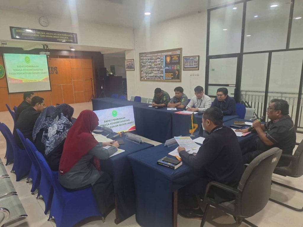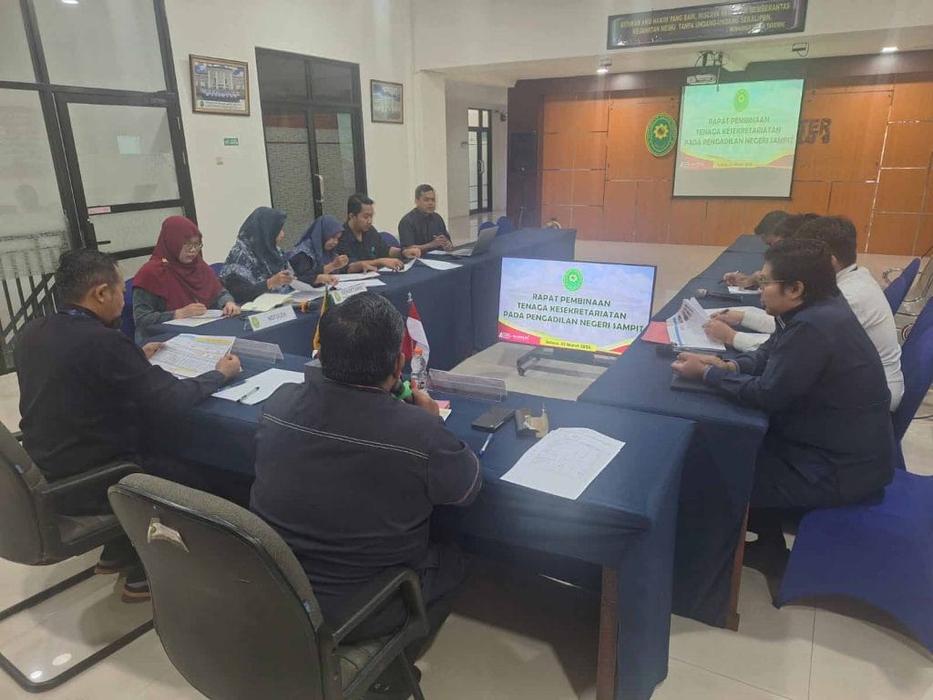 SAMPIT – Ketua Pengadilan Negeri Sampit, Bapak Benny Octavianus, S.H., M.H. memimpin langsung rapat pembinaan bagi seluruh tenaga kesekretariatan pada Selasa, 31 Maret 2026. Dihadiri oleh Wakil Ketua, Hakim Pengawas Bidang Umum dan Keuangan, Sekretaris, seluruh jajaran staf dari bagian Umum dan Keuangan, Kepegawaian, Organisasi dan Tata Laksana, serta Perencanaan, Teknologi Informasi, dan Pelaporan (PTIP). Bertempat di Ruang Aula Lantai 2, rapat ini bertujuan untuk menyelaraskan visi administrasi dengan kebijakan teknis yudisial demi pelayanan publik yang lebih prima.