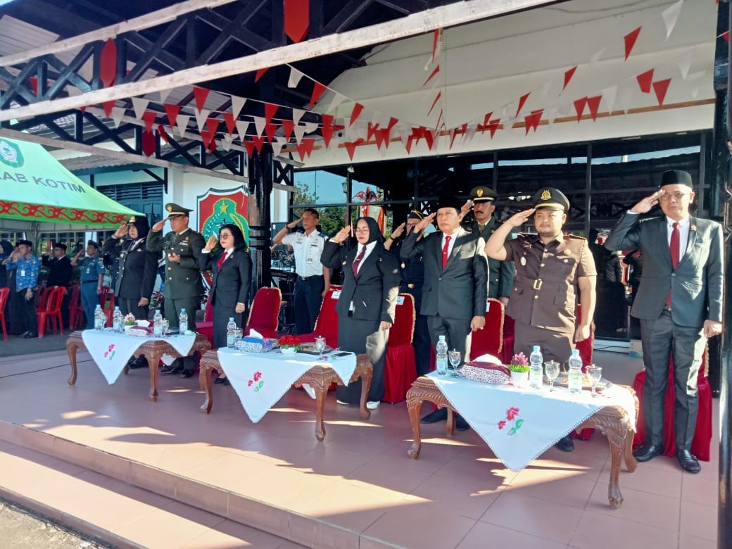 Kamis, 1 Juni 2024 mewakili Ketua Pengadilan Negeri Sampit, Bapak Saiful H.S. Hakim Pengadilan Negeri Sampit menghadiri Upacara Peringatan Hari Lahir Pancasila Tahun 2024 yang diselenggarai oleh Pemerintahan Kabupaten Kotawaringin Timur di halaman Kantor Bupati Kotawaringin Timur, yang di hadiri oleh Bupati Kotawaringin Timur serta turut hadir Wakil Bupati, Ketua DPRD, Sekda, Dandim 1015/Sampit, perwakilan Polres Kotim, Kejaksaan Negeri Kotawaringin Timur serta para Kepala Dinas, TNI, Polri dan instansi lainnya.