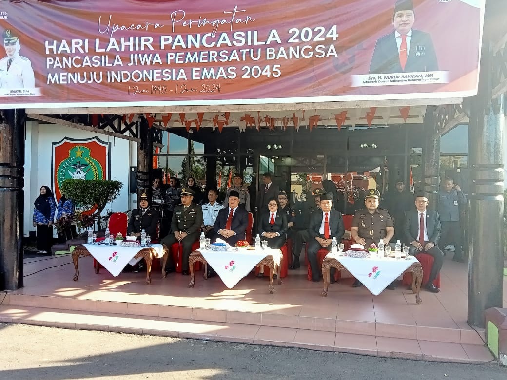 “Dalam momentum yang sangat bersejarah ini, saya mengajak komponen bangsa di mana pun berada untuk bahu membahu membumikan nilai-nilai Pancasila ke dalam setiap aspek kehidupan bermasyarakat, berbangsa, dan bernegara”, merupakan sambutan Kepala Badan Pembinaan Ideologi Pancasila Republik Indonesia dalam rangka Peringatan Hari Lahir Pancasila 1 Juni 1945 – 1 Juni 2024 yang di sampaikan oleh Bupati Kotawaringin Timur sebagai Pembina Upacara Peringatan Hari Lahir Pancasila Tahun 2024.