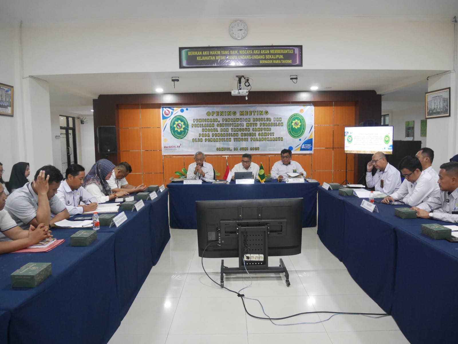 PN Sampit – Senin, 16 Juni 2025. Bertempat di Aula Lantai II Pengadilan Negeri Sampit, telah dilaksanakan Opening Meeting Pengawasan Reguler dan Asesmen Sertifikasi Mutu Pengadilan Unggul dan Tangguh (AMPUH) oleh Pengadilan Tinggi Palangkaraya pada Pengadilan Negeri Sampit yang di ikuti oleh Ketua, Wakil Ketua, Para Hakim, Panitera, Sekretaris, Pejabat Struktural, Pejabat Fungsional dan seluruh staf pelaksana Pengadilan Negeri Sampit.