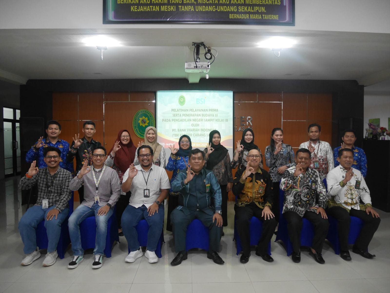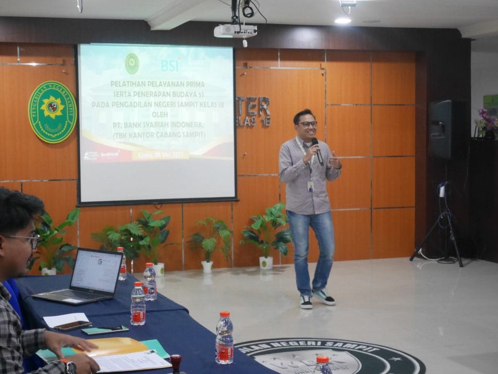 PN Sampit – Kamis, 08 Mei 2025. Dalam rangka meningkatkan Pelayanan, Pengadilan Negeri Sampit mengadakan Kegiatan Pelatihan Pelayanan Prima serta Penerapan Budaya 5S dengan difasilitator dari PT. Bank Syariah Indonesia, Tbk Kantor Cabang Sampit. bertempat di Ruang Aula Pengadilan Negeri Sampit.