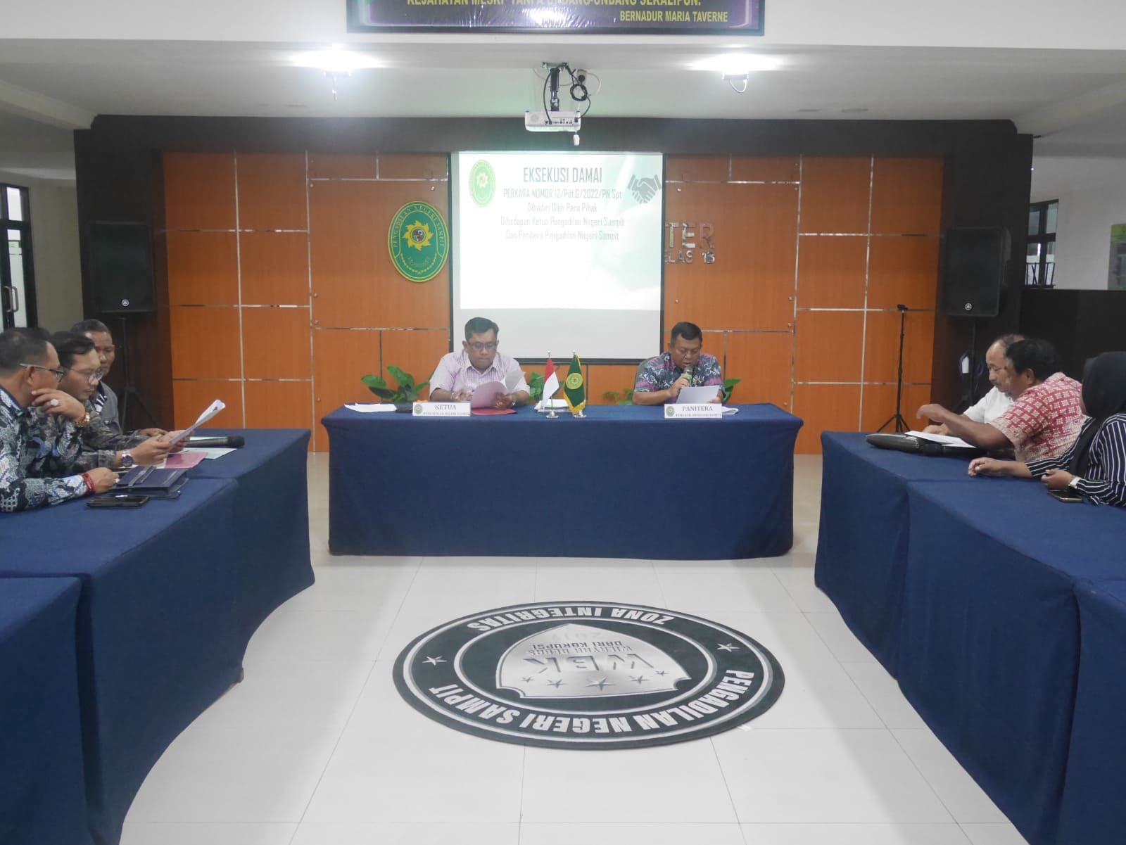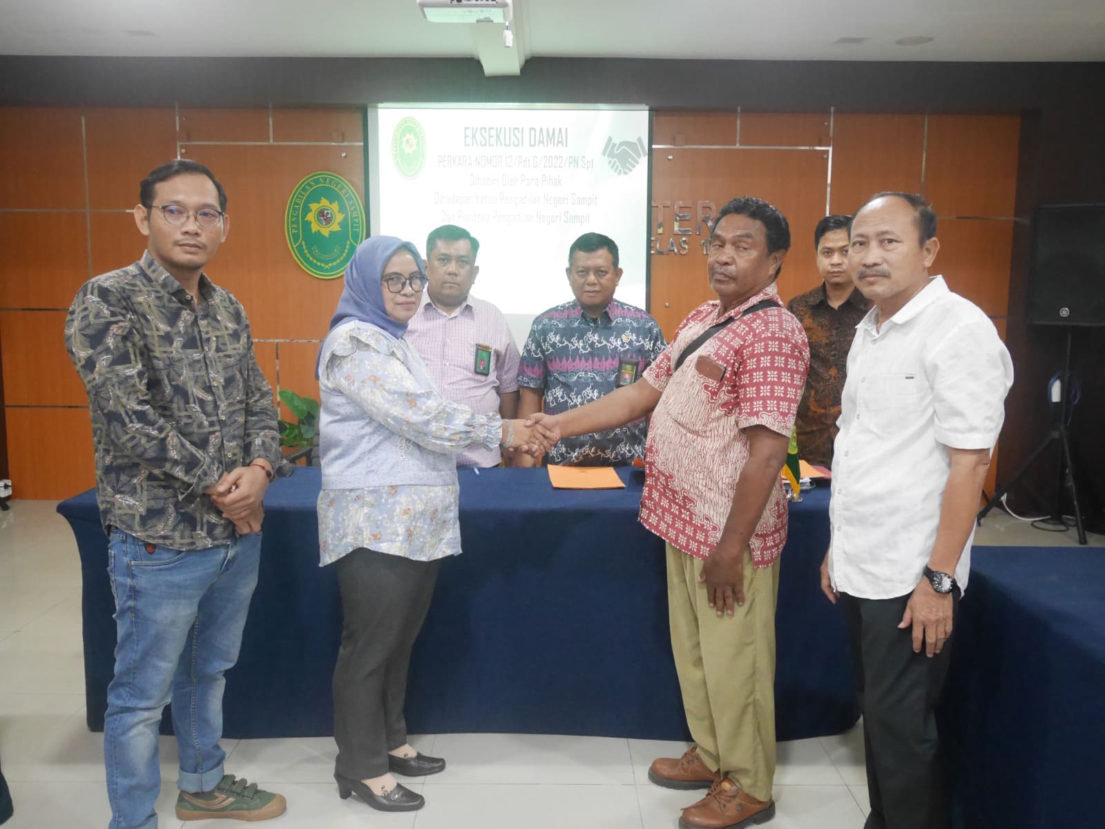 PN Sampit – Jumat, 16 Mei 2025. Pengadilan Negeri Sampit terus berupaya mendorong penyelesaian perkara dengan pendekatan damai yang bermuara pada keadilan restoratif. Ketua Pengadilan Negeri Sampit, Bapak Benny Octavianus, S.H., M.H. didampingi oleh Panitera Pengadilan Negeri Sampit Bapak Anung Handono, S.H., memimpin langsung pelaksanaan eksekusi damai antara Koperasi Itah Belum Bahadat sebagai Pemohon Eksekusi dan Koperasi Produksi Hidup Lestari sebagai Termohon Eksekusi di Aula Lantai 2 Pengadilan Negeri Sampit yang menyatakan sepakat akan melaksanakan atau memenuhi isi amar putusan perkara Nomor 12/Pdt.G/2022/PN Spt tanggal 18 Oktober 2022 Jo. Putusan Pengadilan Tinggi Nomor 98/PDT/2022/PT PLK tanggal 15 Desember 2022 Jo. Putusan Kasasi Nomor 3440 K/Pdt/2023 tanggal 29 November 2023 Jo. Putusan Peninjauan Kembali Nomor 1051 PK/Pdt/2024 tanggal 4 September 2024 secara damai.