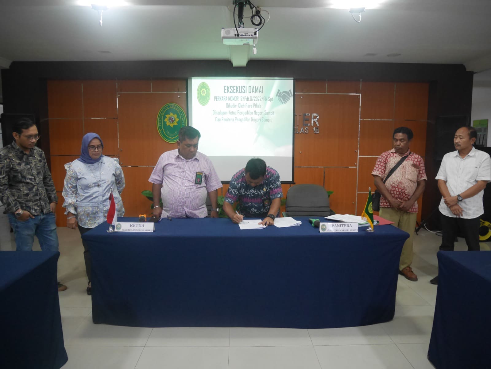 Dalam sambutannya, Ketua Pengadilan Negeri Sampit menyampaikan ucapan terima kasih kepada para pihak yang telah dapat melaksanakan atau memenuhi isi amar putusan tersebut secara damai, karena hakekatnya perdamaian kedua belah pihak suatu kemenangan bersama dan keadilan yang sejati serta menguntungkan kedua belah pihak. Dalam pelaksanaan kegiatan tersebut di akhiri dengan menandatanganan Berita Acara Eksekusi Damai Perkara Nomor 2/Pdt.Eks/2025/PN Spt oleh Bapak Anung Handono, S.H. sebagai Panitera Pengadilan Negeri Sampit, Ibu Mentayawati sebagai Ketua Koperasi Itah Belum Bahadat/Pemohon Eksekusi, Bapak Nitro Abditya, S.H. sebagai Kuasa Pemohon Eksekusi, Bapak Arnolus Nomnafa sebagai Ketua Koperasi Produksi Hidup Lestari/Termohon Eksekusi, Bapak Mochammad Iman, S.H. sebagai Kuasa Pemohon Eksekusi serta Bapak Ricky Rahman, S.H dan Syahrudin sebagai Saksi.