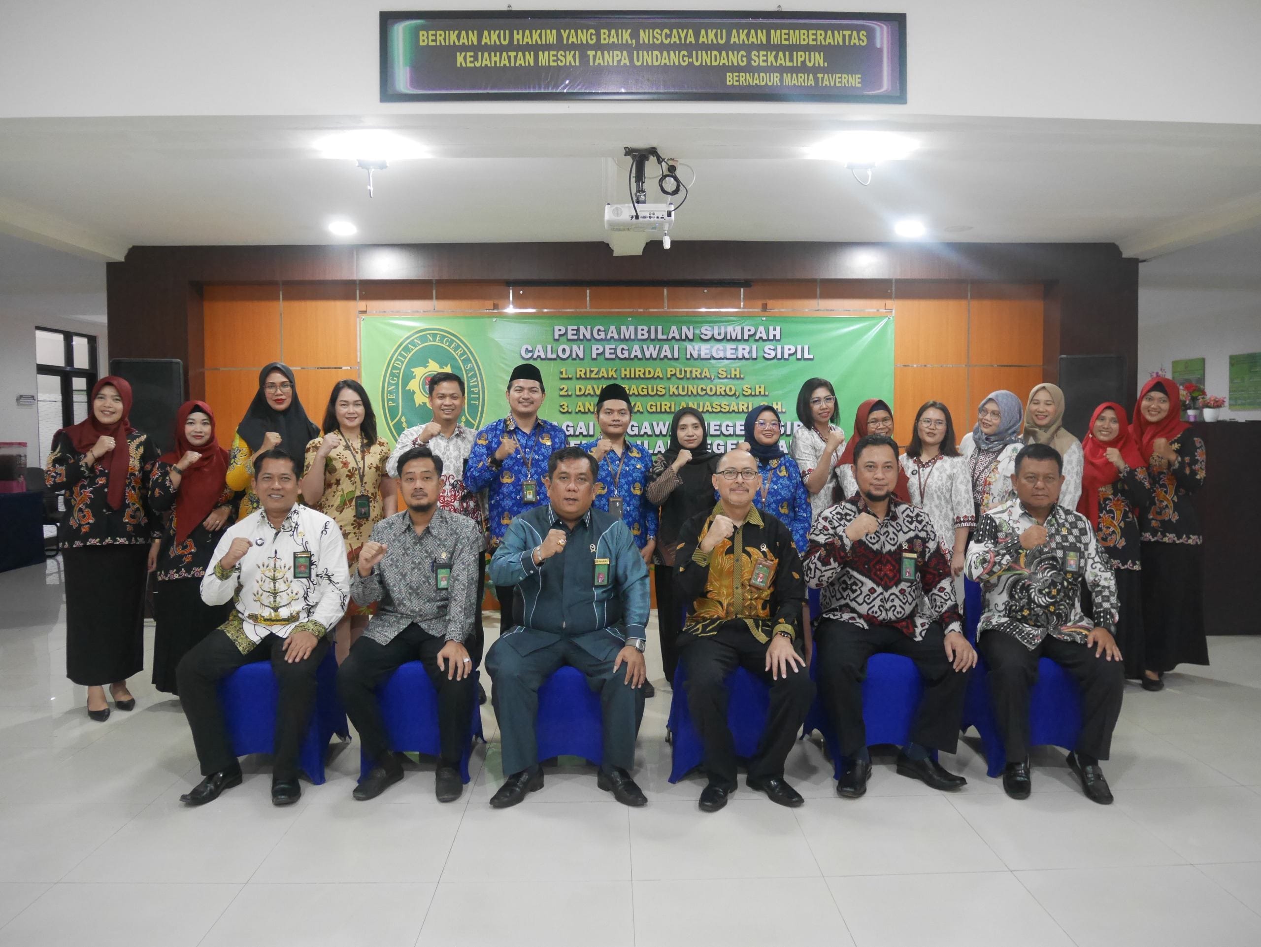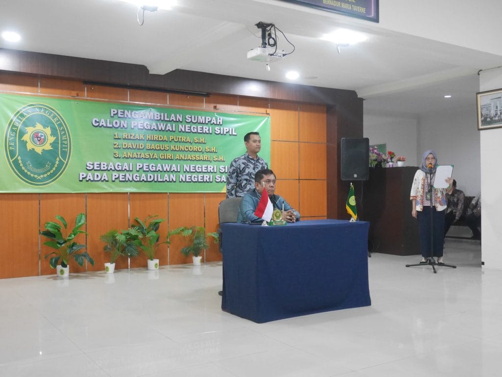 PN Sampit – Kamis, 08 Mei 2025. Ketua Pengadilan Negeri Sampit, Bapak Benny Octavianus, S.H., M.H. memimpin langsung Pengambilan Sumpah Calon Pegawai Negeri Sipil:
