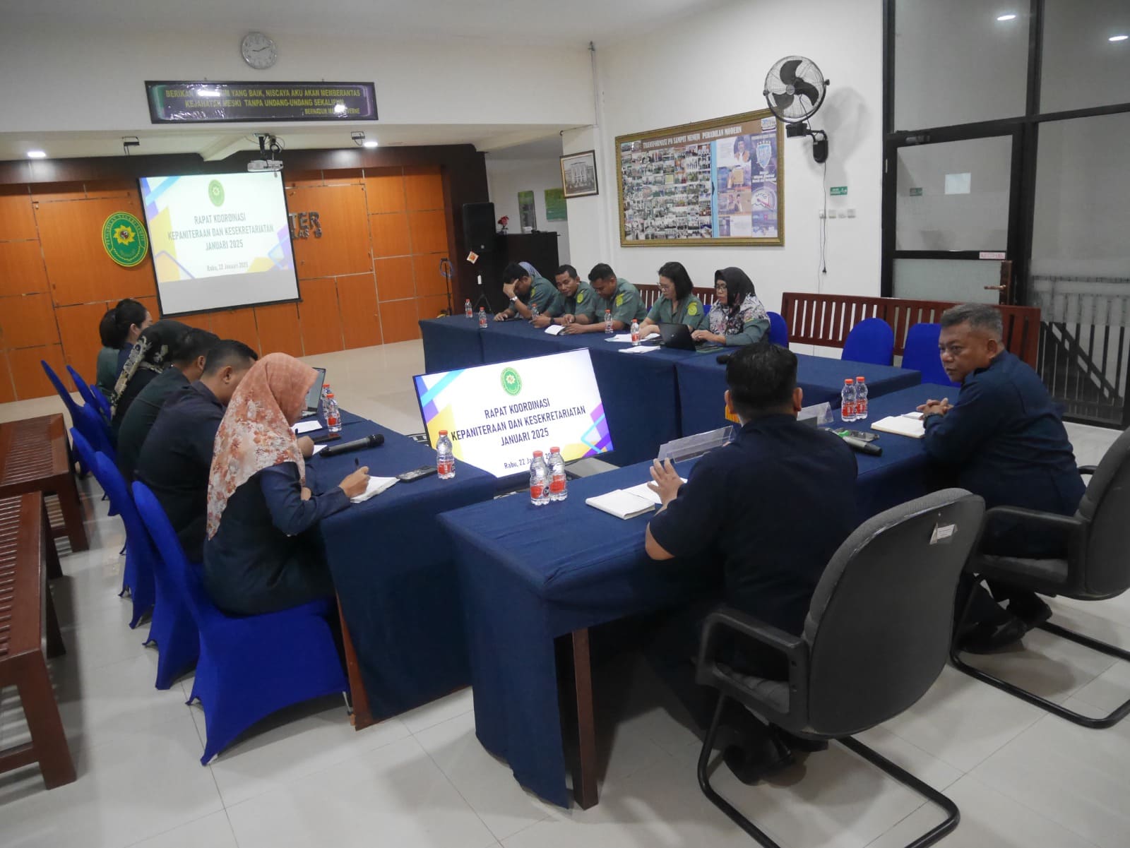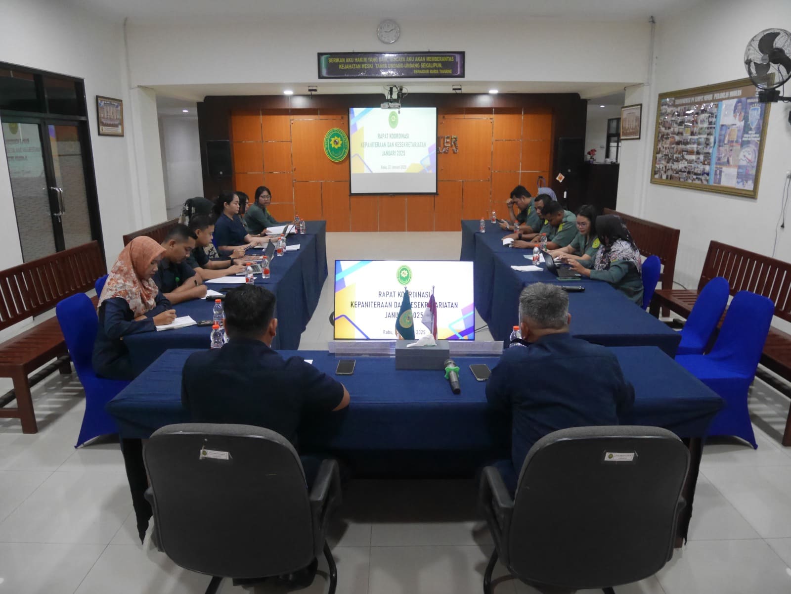 PN Sampit, 22 Januari 2025, Dilaksanakan Kegiatan Rapat Koordinasi Kepaniteraan dan Kesekretariatan Pengadilan Negeri Sampit Bulan Januari Tahun 2025, bertempat di Aula Lantai II Pengadilan Negeri Sampit, di Pimpin oleh Panitera Bapak Anung Handono, S,H di dampingi oleh Sekretaris Bapak Muhammad Noor, S.Kom dan di hadiri oleh Pejabat Struktural dan Fungsional serta seluruh Staf Pelaksana.