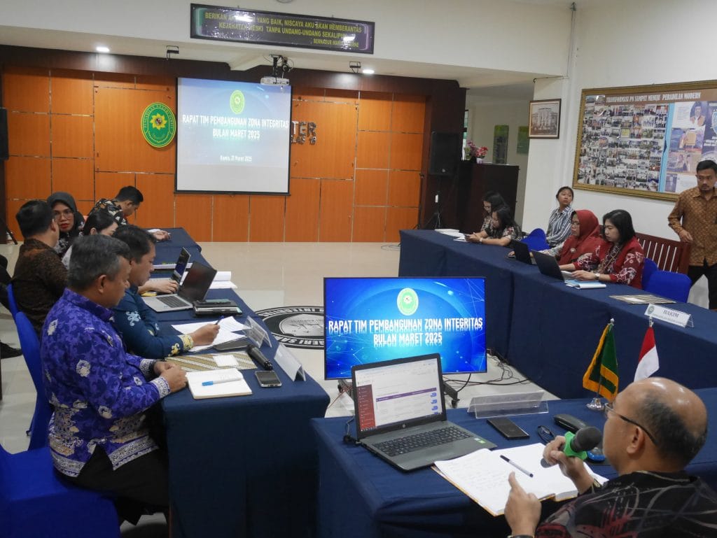 Sampit, Jum’at, 21 Maret 2025, Rapat Tim Pembangunan Zona Integritas Maret 2025 dipimpin oleh Wakil Ketua Pengadilan Negeri Sampit, Bapak Yulanto Prafifto Utomo, S.H., M.H., selaku Ketua Pembangunan ZI didampingi oleh Bapak Ketua Pengadilan Negeri Sampit selaku Pembina Pembangunan ZI serta dihadiri oleh Koordinator Teknikal, Koordinator Operasional, Koordinator dan Anggota per masing – masing area Zona integritas Pengadilan Negeri Sampit Tahun 2025.