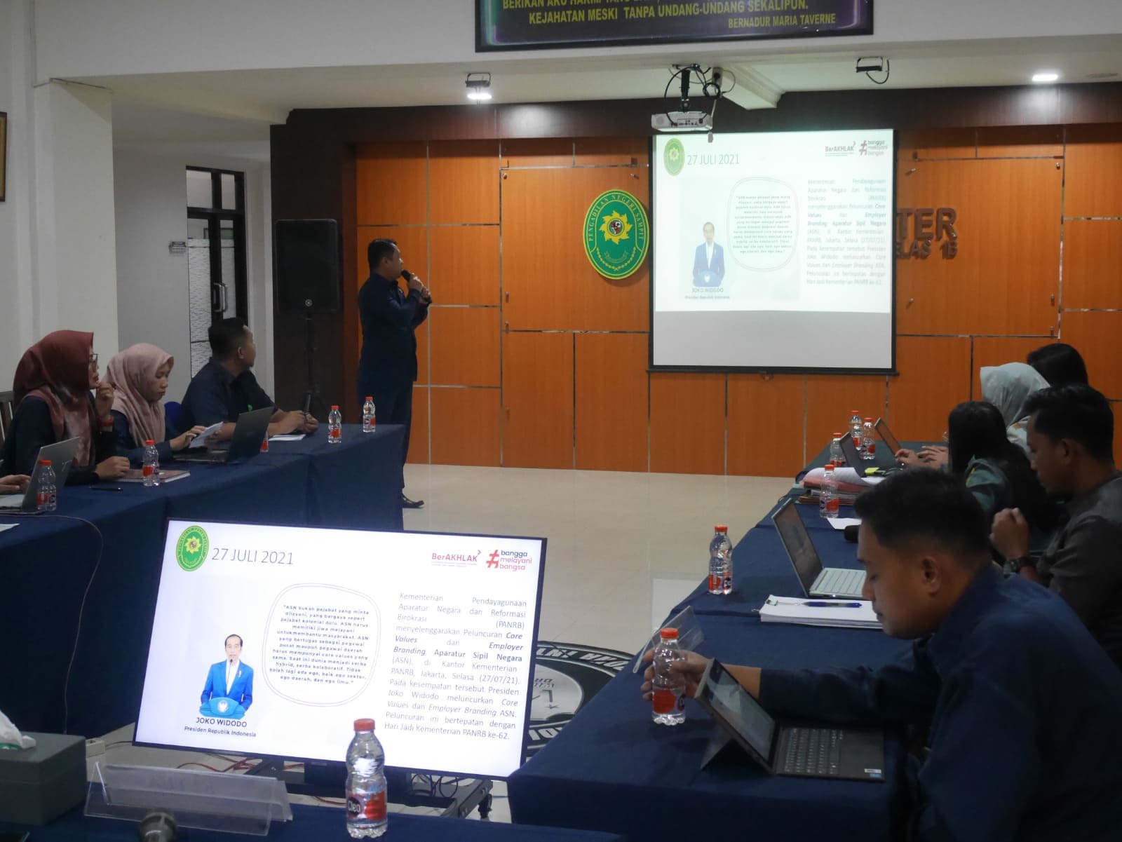 PN Sampit, 21 Januari 2025, Core Values ASN BerAKHLAK diresmikan oleh Presiden Joko Widodo pada tanggal 27 Juli 2021 bersamaan dengan peluncuran employer branding “Bangga Melayani Bangsa”. BerAKHLAK merupakan kepanjangan dari Berorientasi Pelayanan, Akuntabel, Kompeten, Harmonis, Loyal, Adaptif, dan Kolaboratif. Core values ASN menjadi penguatan dan pedoman ASN dalam melaksanakan tugas dan fungsi yang bekerja baik pada instansi pemerintah di tingkat pusat maupun daerah. Core Values ini bertujuan untuk menyeragamkan nilai-nilai dasar bagi seluruh ASN di Indonesia sehingga dapat menjadi fondasi budaya kerja ASN yang profesional.