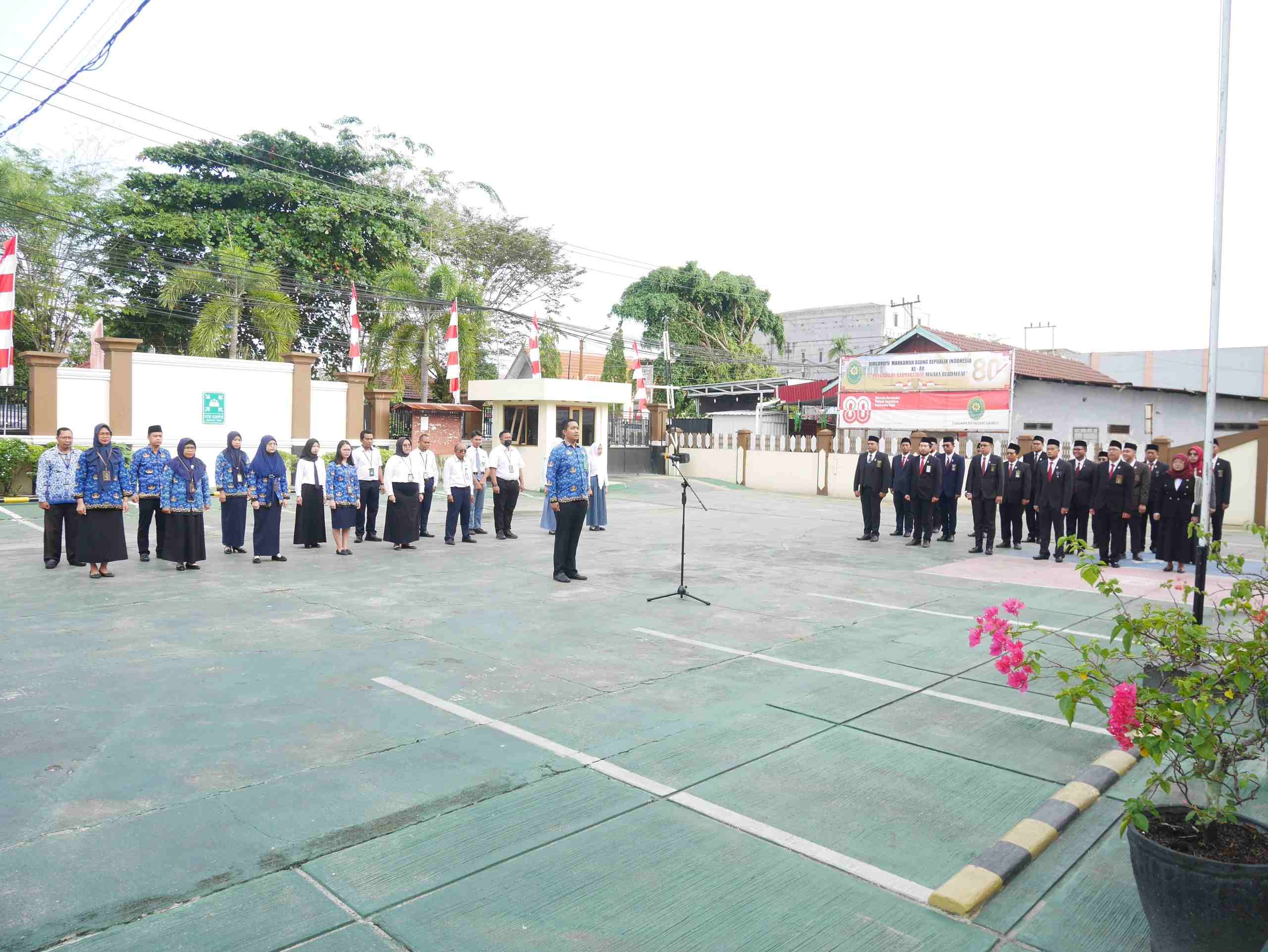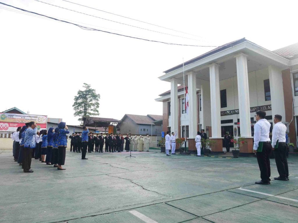 PN Sampit – Minggu, 17 Agustus 2025. Pengadilan Negeri Sampit melaksanakan upacara bendera peringatan Hari Ulang Tahun (HUT) Kemerdekaan Republik Indonesia ke-80, dengan mengusung tema “ Bersatu Berdaulat, Rakyat Sejahtera Indonesia Maju “, dengan Pembina upacara Ketua Pengadilan Negeri Sampit Bapak Benny Octavianus, S.H., M.H. , dan Pemimpin upacara Kepala Sub Bagian Umum dan Keuangan Bapak Dimas Amoroso Aning Wijanarko, S.Kom. dihadiri oleh Wakil Ketua, Para Hakim, Sekretaris, Pejabat Struktural dan Fungsional, ASN, PPNPN serta Ibu-ibu Dharmayukti Karini Cabang Sampit. bertempat di halaman Kantor Pengadilan Negeri Sampit.